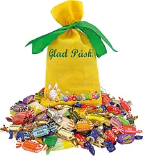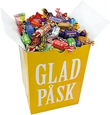 Årets godaste godisblandningar heter God Påsk, Glad Påsk och Happy Easter som levereras i storlekarna 12 cm, 15 cm, 18 cm, 23 cm, 30 cm och 40 cm.
