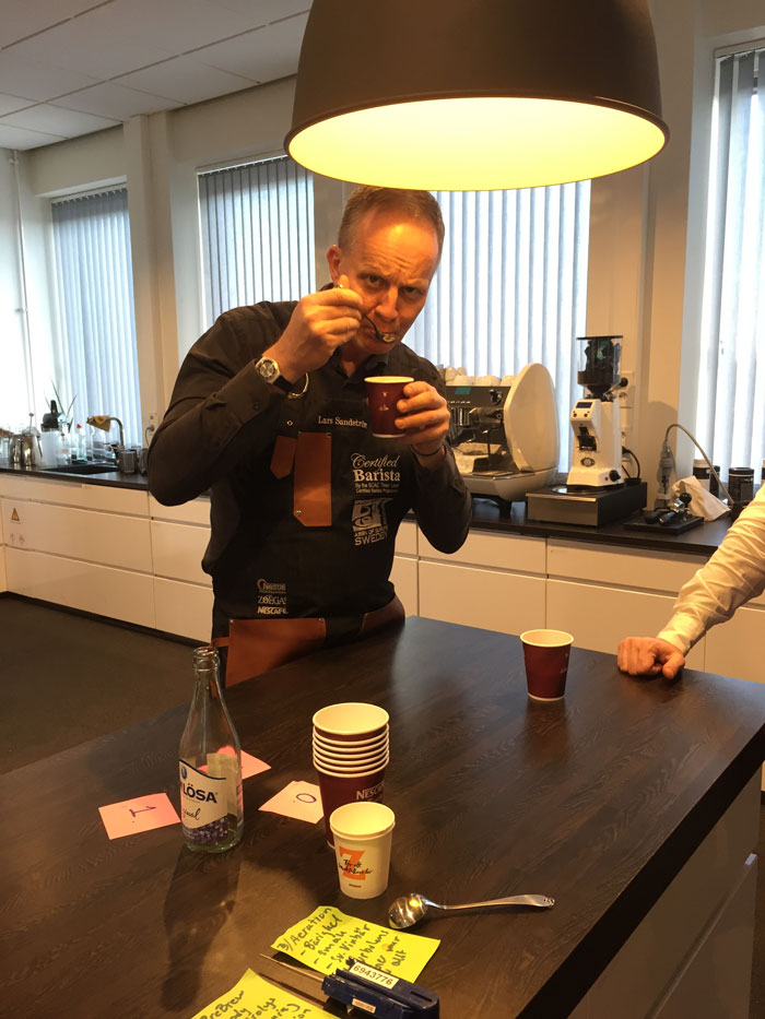 Läromästare Lars Sandström på Zoégas och Nestlé stod för utbildning som genomfördes med stort engagemang och inlevelse. Mycket intressanta dagar i Helsingborg för alla som avslutades med diplomering av dagens utbildning.
