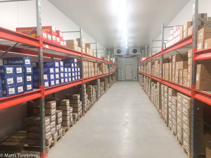 Nya frysen som togs i bruk fullt ut tisdag 12 mars 2019. Här är det alltid kallt, minst -18°C.