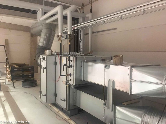 Slutintrimminng pågår av nya ventilationsanläggningen till höglager, pacshop, kontor och servicerum.