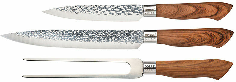 Med Akira Trancherset kan du enkelt tranchera fantastiska köttbitar. Handtagen i träimitation ligger stadigt i handen medan de hamrade bladen i stål bidrar till den exklusiva känslan.