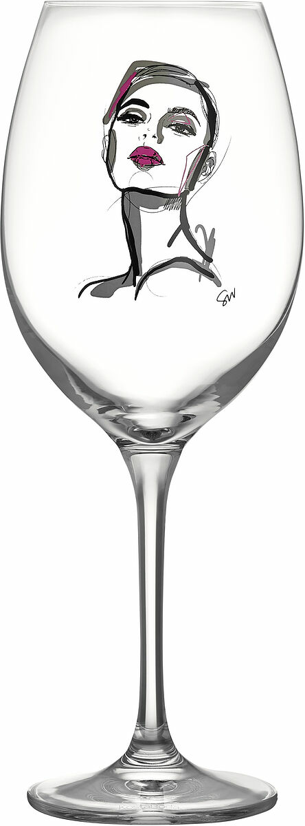 Vinglasen i serien All About You från Kosta Boda handlar om kärlek, längtan och passion - starka känslor fångade i glas med sparsmakad design och illustrerade motiv med influenser från modevärlden. Glaset Hold you har ett kvinnligt motiv i rosa som speglar lugn, trygghet och kärlek.