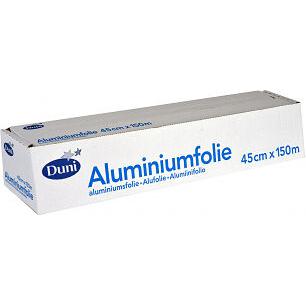 Kraftig aluminiumfolie i dispenser med rivkant. Lämplig till all sorts mat förutom väldigt salt mat eller mat med lågt pH upp till 250⁰C.