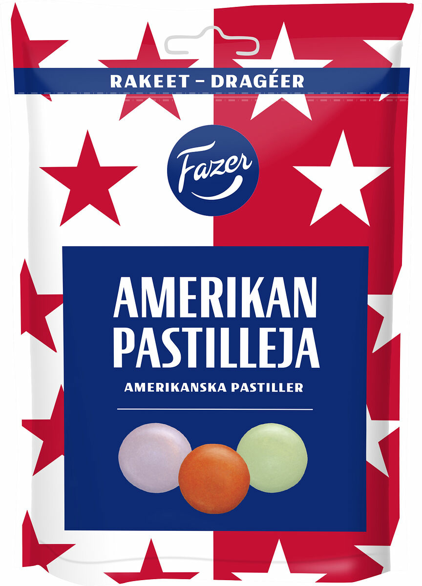 Amerikanska linserna består av mjölkchoklad med ett krispigt överdrag och kommer i tre läckra färger. De är förpackade i en återförslutningsbar påse och passar därför perfekt till bion, på utflykt eller hemma till fredagsmyset. De passar även bra som dekoration när du bakar. Och som alltid är all choklad från Fazer gjord på 100% spårbar och ansvarsfullt producerad kakao.