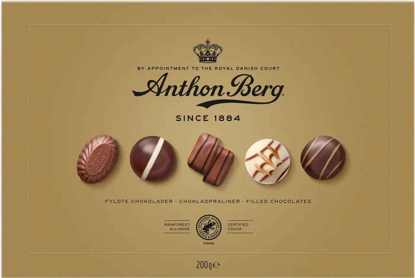 Anthon Bergs Guldask lanserades 1937 och var förmodligen Danmarks första presentask med choklad och den är idag favorit över hela världen. I år är chokladaskarna uppdaterade med många nyheter och ny mix av praliner, större variation, flera med nougat och färre med marsipan. Asken med den ikoniska guldfärgen är en perfekt gåva till värdinnan, jubilaren eller en god vän. Asken med den ikoniska guldfärgen är en perfekt gåva till värdinnan, jubilaren eller en god vän.