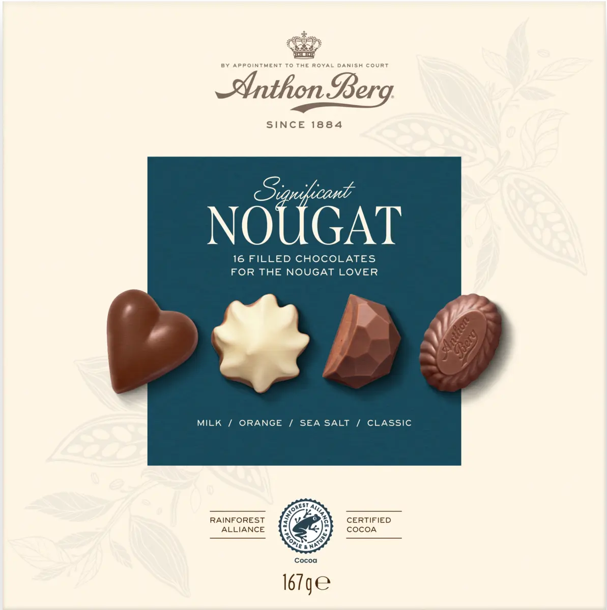 Anthon Berg Significant Nougat är en ask för dig som älskar nougat och inte kan få nog. Chokladpraliner fyllda med utsökt nougat i olika varianter och smaker.
