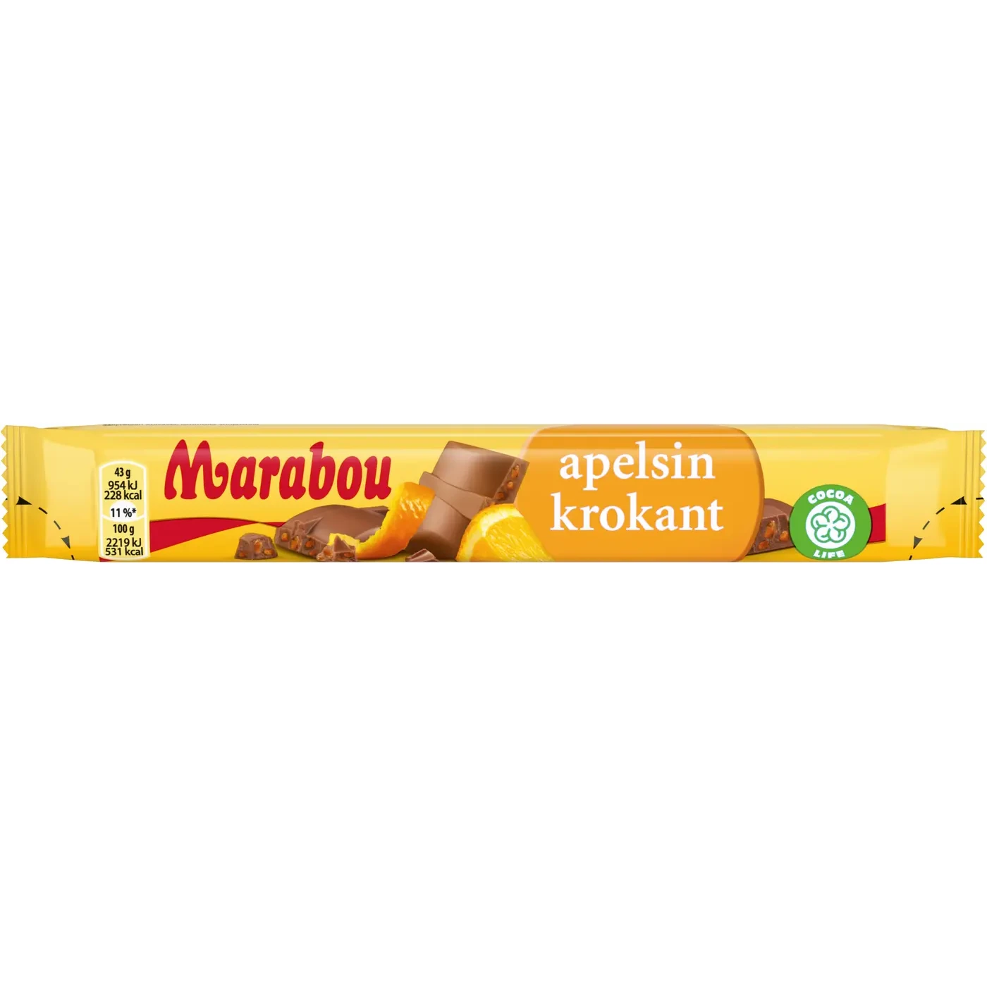 Svenskarnas favorit Marabou Apelsinkrokant finns nu i ett mindre format. Vår älskade Marabou mjölkchoklad med knapriga bitar av krokant med smak av apelsin, för dig som vill njuta på språng eller av en mindre godbit i lugn hemmamiljö.