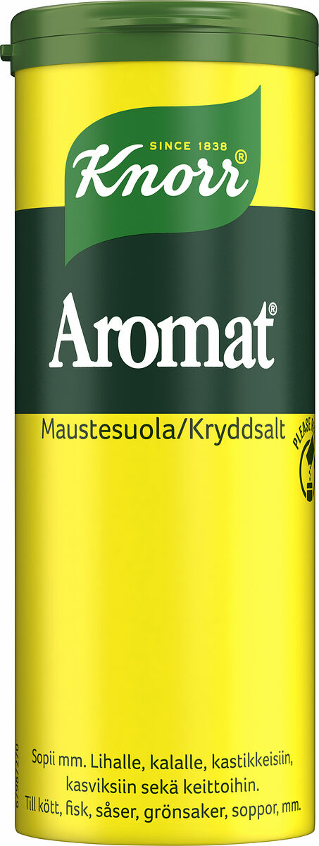 Knorr Aromat Kryddsalt är ett allsidigt kryddsalt som kan som smaksättning användas till det mesta inom matlagning – både under tillredning och som bordskrydda. Knorr Aromat Kryddsalt är en fint balanserad blandning av örter och kryddor, noggrant utvalda för att ta fram det bästa i dina måltider. Full av smak – och dessutom snabb och enkel att använda.