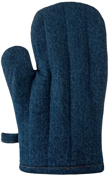 Snygg och praktisk grillhandske i mörk denim med bruna sömmar och ett vadderat mönster som matchar förklädet i samma serie. Perfekt för att ge både stil och skydd vid grillen. Certifierad bomullsdenim.