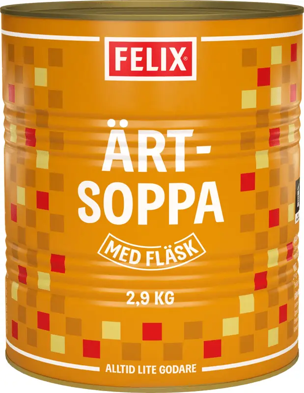 En klassisk ärtsoppa gjord på gula ärtor, rimmat fläsk och lök, smaksatt med timjan och mejram. Marknadens enda ärtsoppa i storhushållsförpackning med riktigt lång hållbarhet.