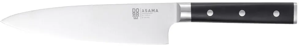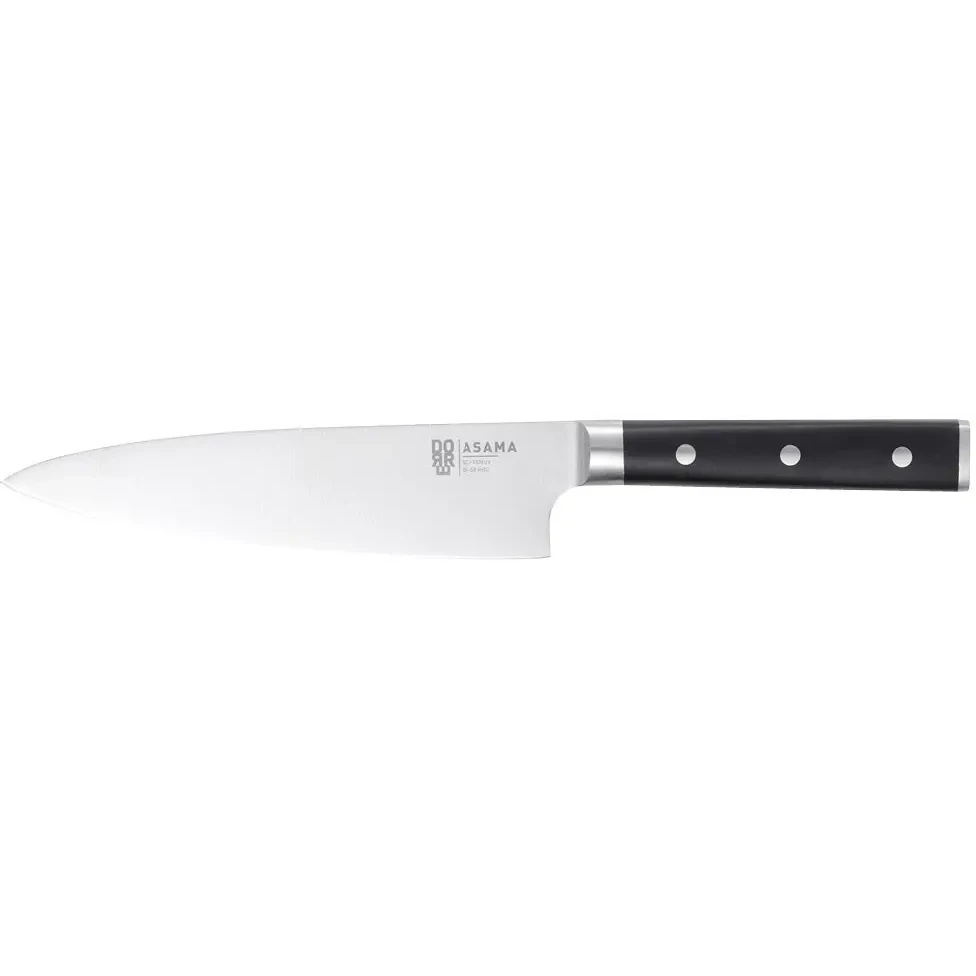 Asama kockkniv är ett oumbärligt verktyg för både professionella kockar och hemmakockar. Med ett blad i högkvalitativt 5Cr15MoV-stål (HRC 56-58) erbjuder denna kniv en utmärkt balans mellan skärpa, hållbarhet och flexibilitet. Bladets design gör den idealisk för att hacka, skiva och tärna grönsaker, kött och örter med precision. Det ergonomiska handtaget ger ett stabilt grepp och maximal komfort, vilket gör den lätt att använda under långa sessioner i köket.