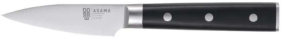 Asama skalkniv med ett blad i högkvalitativt 5Cr15MoV-stål (HRC 56-58) ger en utmärkt balans mellan skärpa och hållbarhet. Den smidiga och precisa utformningen gör den perfekt för skalning och finare köksarbeten. Handtaget är ergonomiskt utformat för optimal komfort och kontroll.