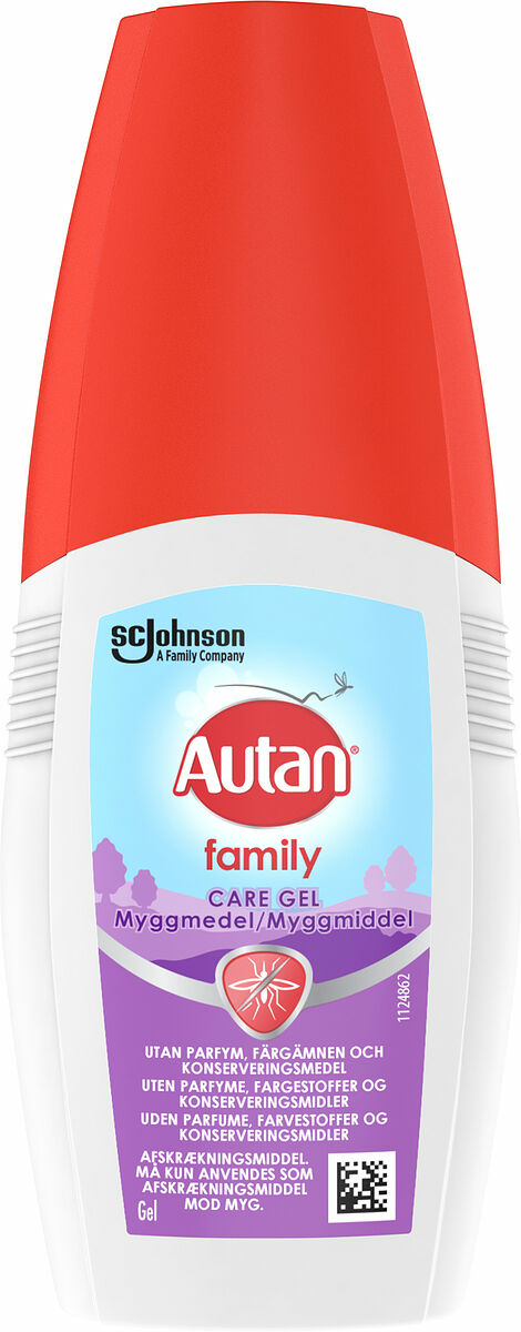 Autan Family care gel är säker att använda på barns ömtåliga hud (barn över tre år). Det här är ett insektsmedel som skyddar mot myggbett i upp till 4 timmar. Håll utom räckhåll för barn och husdjur. Läs på etiketten för andra försiktighetsåtgärder och användningssätt.