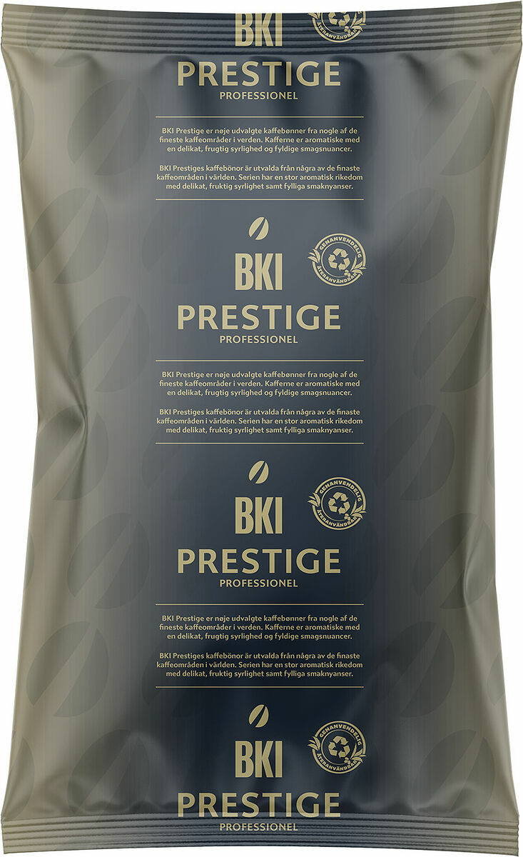 BKI Prestige består av noggrant utvalda kaffebönor av högsta kvalitet. Prestige-kaffesorterna består av hundra procent Arabica-kaffe från några av de finaste kaffeområdena i Colombia, Brasilien och Mellanamerika. Dessa kaffesorter har vi valt att rosta så vi bevarar så mycket som möjligt av de fina oljor som finns naturligt i kaffet. Det känns i kaffets fyllighet och i den läckert syrliga smaken. Med BKI Prestige får du fruktiga, milda gourmet kaffesorter. Smaken är intensiv men ändå harmonisk. Stor smak