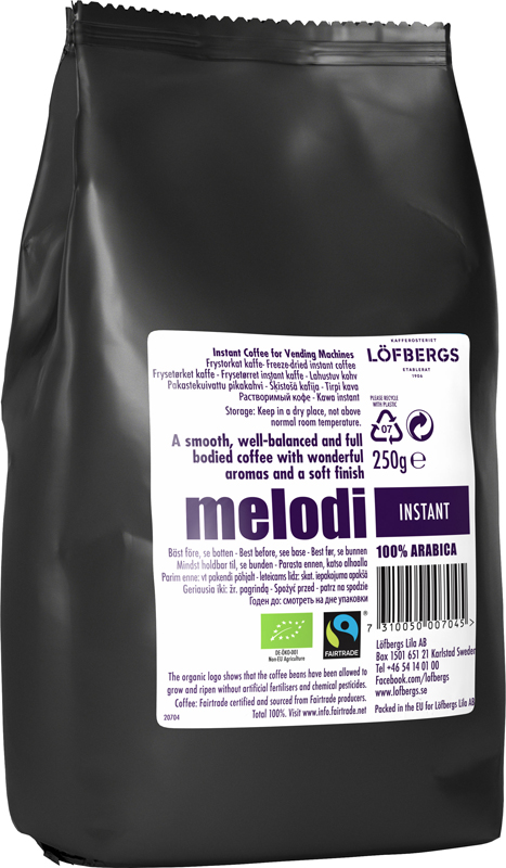 Ekologiskt och Rättvisemärkt frystorkat instantkaffe 100% frystorkat arabicakaffe mellanrost. Solidariskt och ekologiskt odlat för en garanterat god eftersmak.