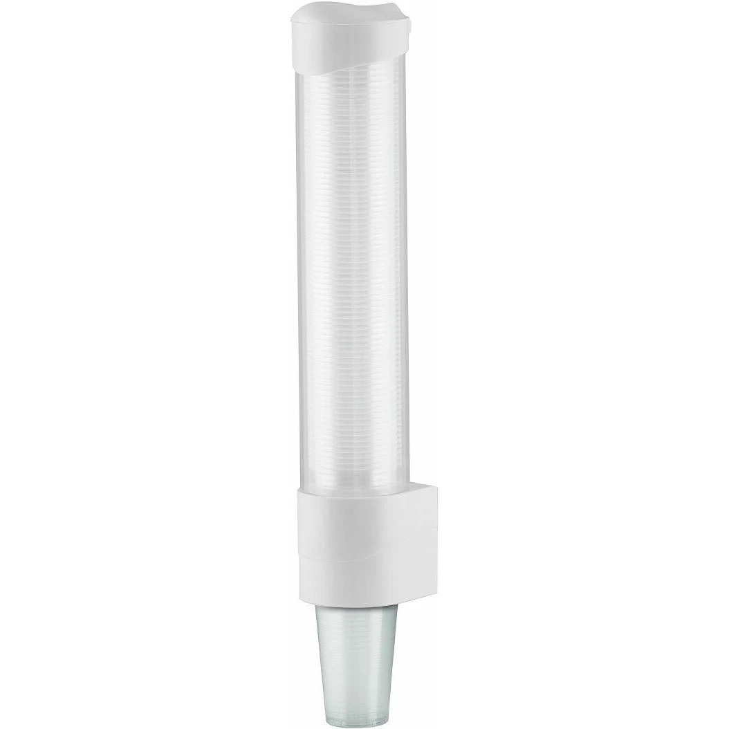 Dispensern kan antingen fästas direkt på sidan av en vatten- eller kaffemaskin i plåt med magnetfästet, eller skruvas fast i en vägg. Anpassad för standard 20 cl PET/PP-bägare och rymmer ett rör om 100 st bägare.
