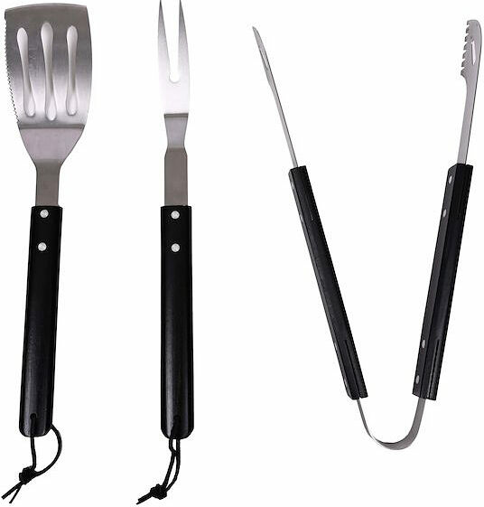 Rejält grillset i tre delar med tång, spade och gaffel. Svartbetsade handtag. Grillsetet säljs i snygg tygpåse med dragsko. Perfekt present till grillmästaren!