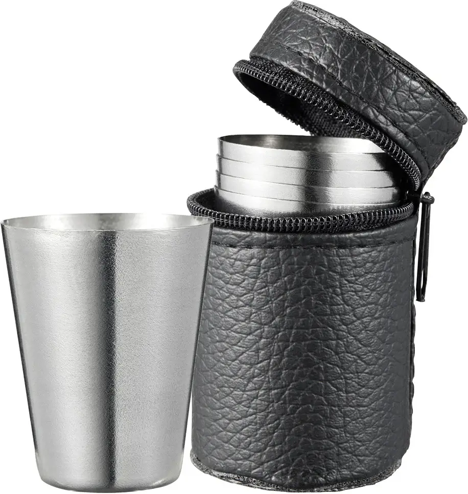 Med Benny Snapsmugg är du alltid redo för fest. Dessa stilrena snapsmuggar i rostfritt stål kan du enkelt ta med dig då de förvaras i ett snyggt fodral av konstläder.