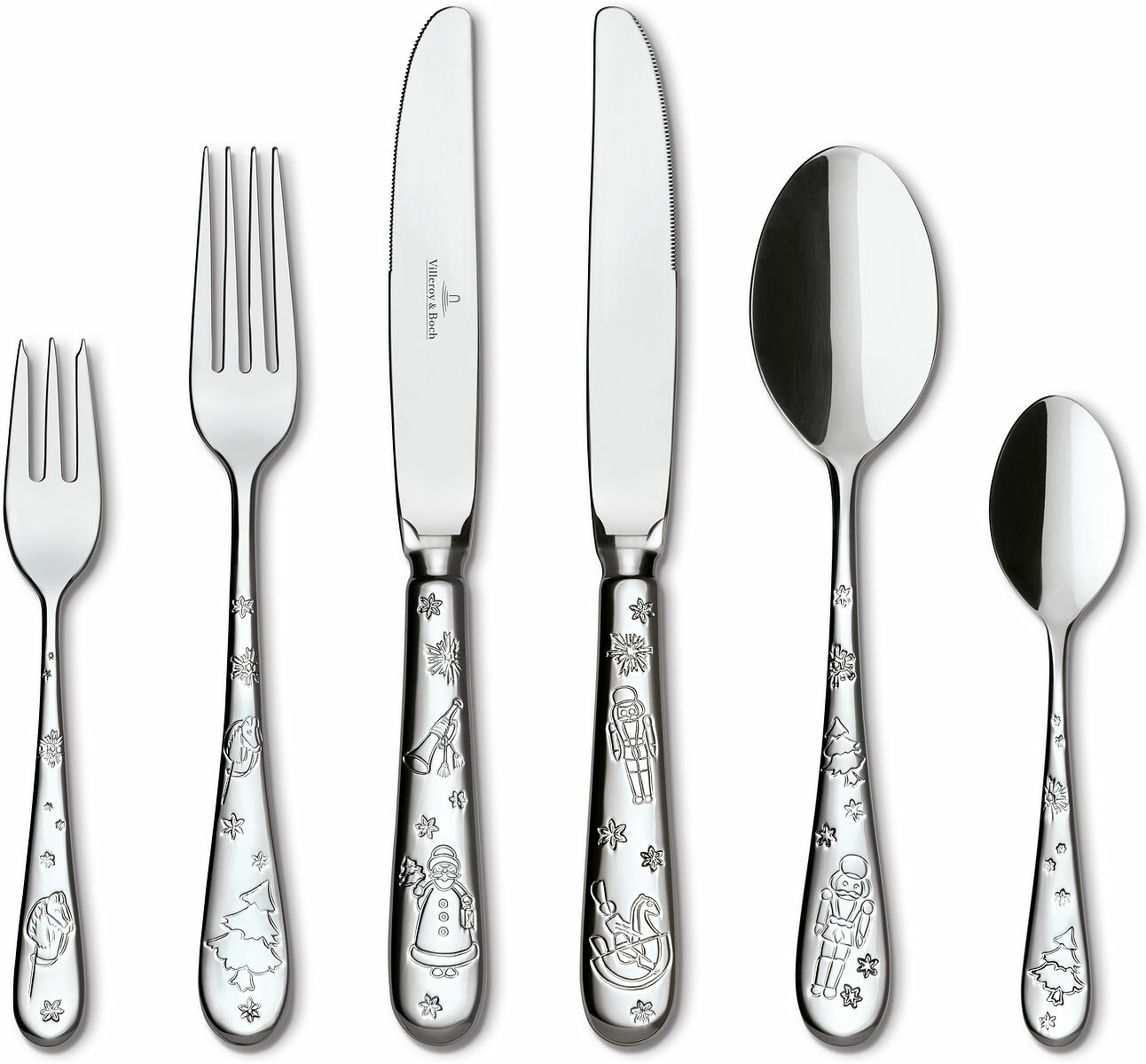 Detta bestickset med graverade leksaksmönster kompletterar Toys Delight servis och ger en festlig touch till vilket bord som helst.