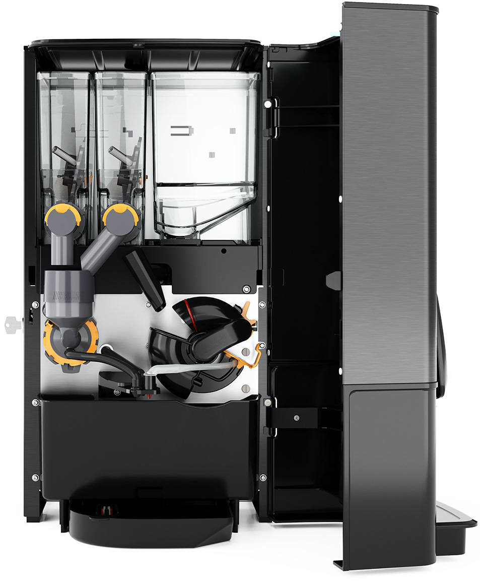 Pekskärmen meddelar om underhållsbehov. Till exempel när sumpbehållaren måste tömmas, avkalkning krävs och när bryggaren måste rengöras. Dessutom minimerar det unika hetvattensystemet kalkbeläggning. Det resulterar i mindre underhåll.