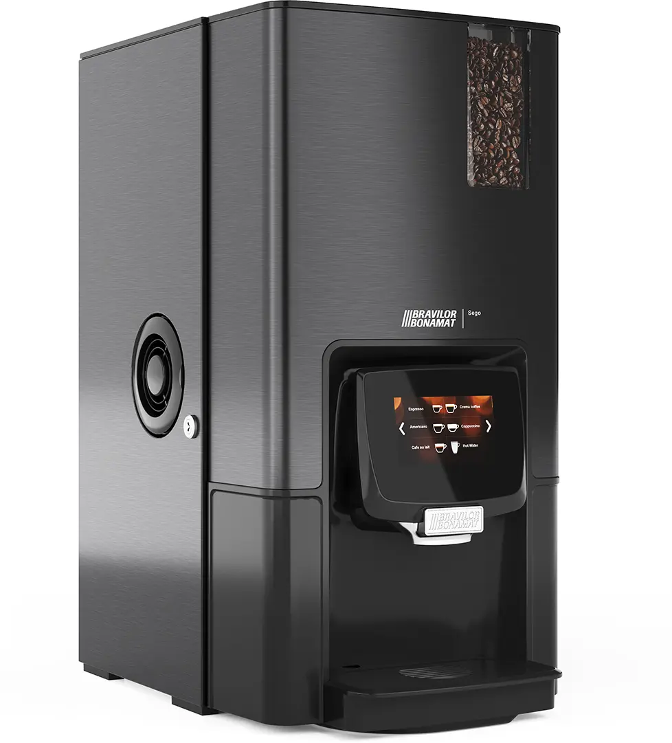 När Sego inte har använts en tid går maskinen automatiskt över till energisparläge. Sego är en helautomatisk espressomaskin från Bravilor Bonamat. Alla kaffespecialiteter bryggs med färskmalda kaffebönor. Den omfattande menyn erbjuder 30 val via pekskärmen.