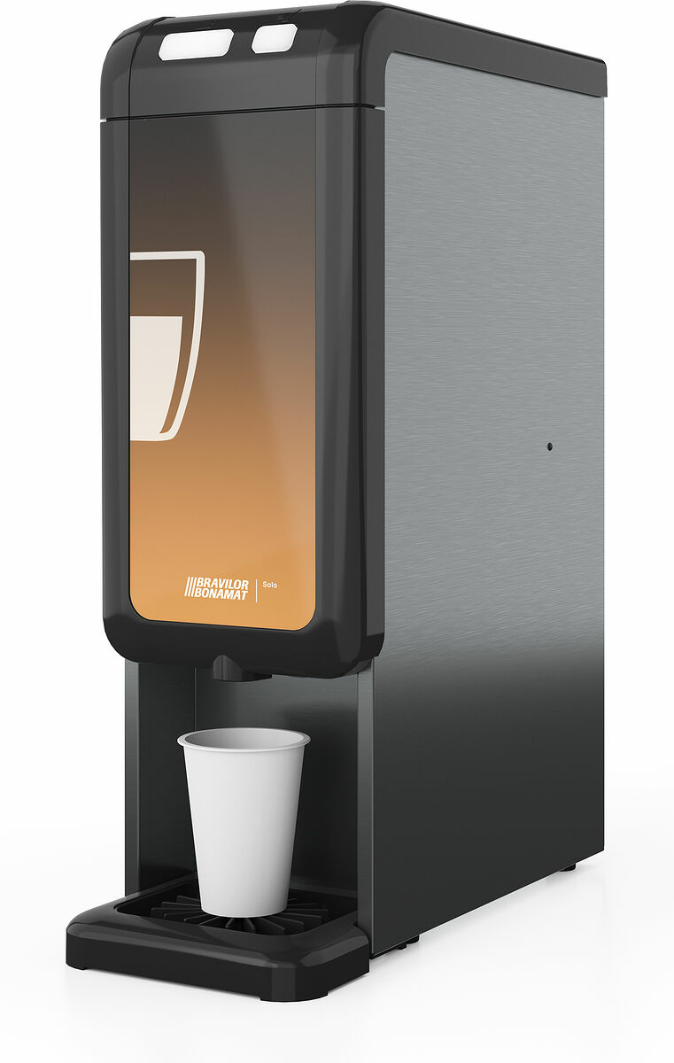 Förutom de Bolero-instantmaskinerna erbjuder Bravilor Bonamat Solo, en separat dispenser för varm choklad. Tryck bara på knappen och varm choklad hälls i din kopp. Mängden vatten och kakao kan förprogrammeras till önskad koppstorlek.