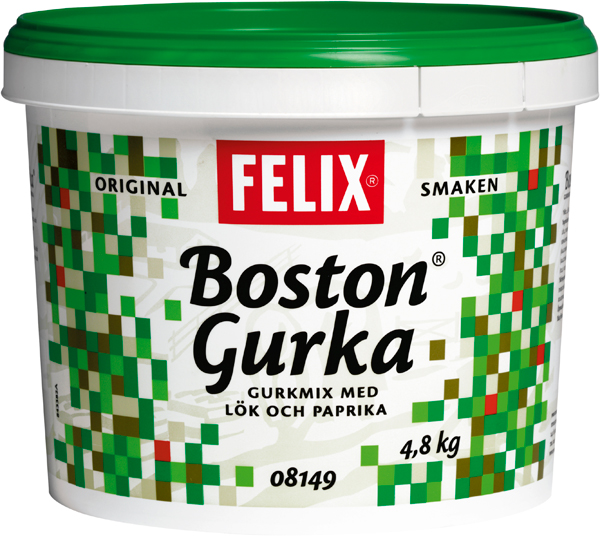 Bostongurka® är en gurkmix av fint tärnad gurka, lök, paprika & senapsfrön. Det självklara valet till korven i gatuköket. 90 % av Felix gurkor handplockas av våra egna, utvalda odlare runt om i Södra Sverige. 4,8 kg.