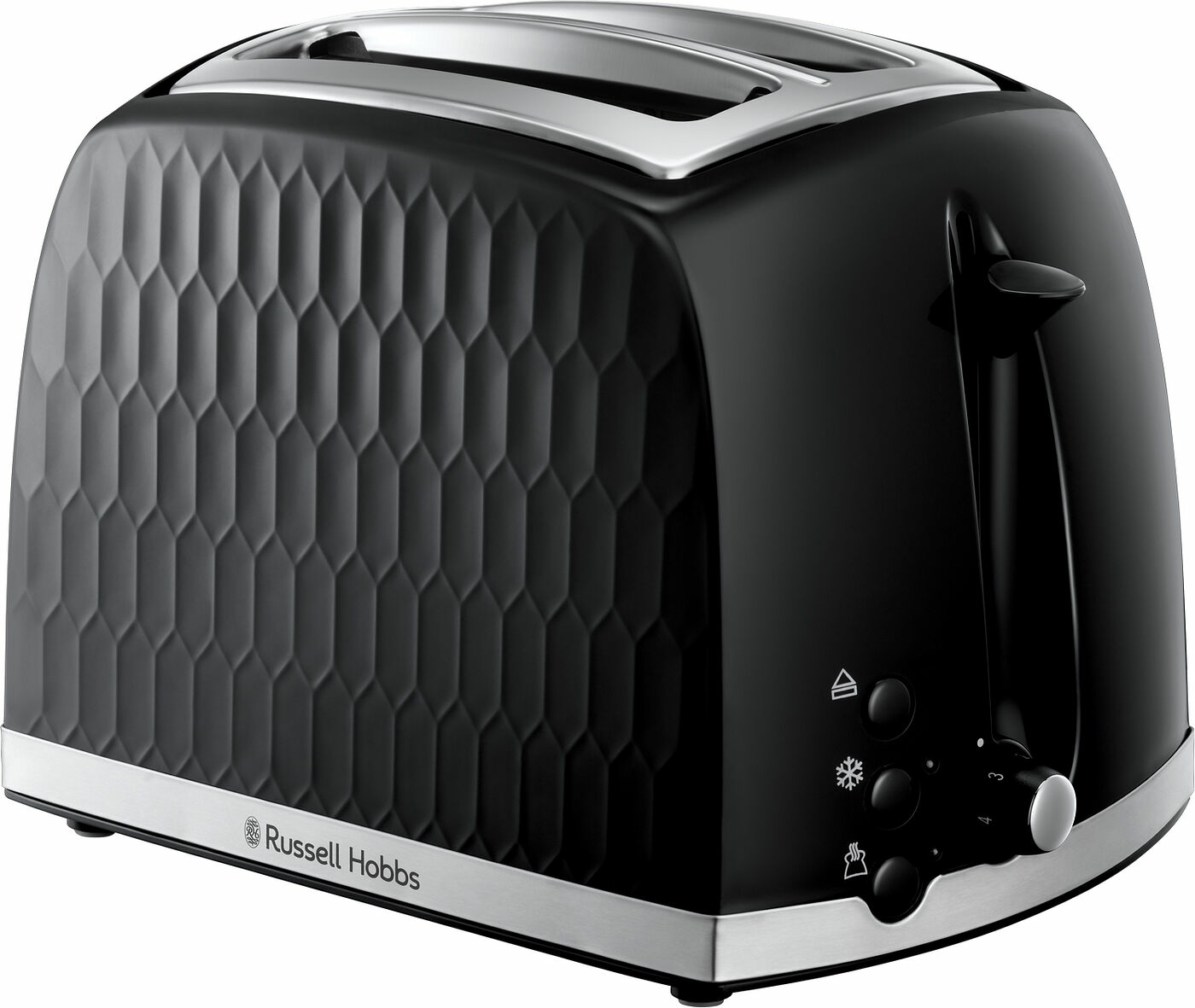 Med en unik texturerad design i plast och kromaccenter kommer Honeycomb brödrost att liva upp ditt kök