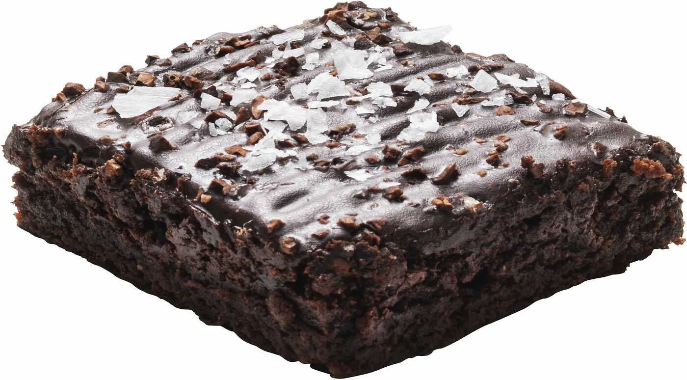 Vegansk mjuk chokladruta bakad med mörk choklad, täckt med len chokladkräm, kakaonibs och havssalt. Palmoljefri. Glutenfri. Utan laktos i receptet.