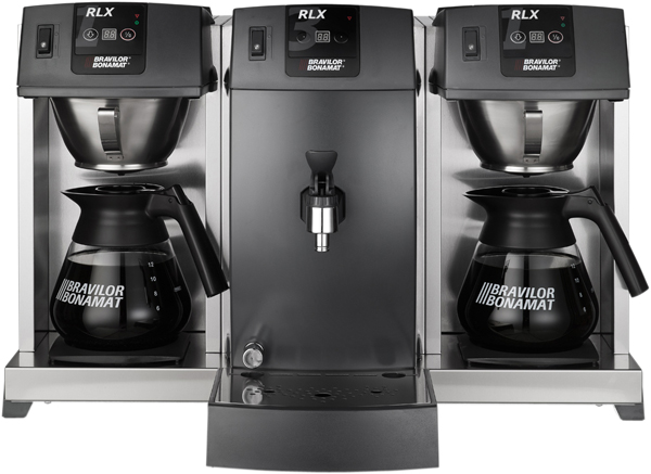RLX-serien med behållare som brygger kaffe i glaskanna, och är enkel att vattenansluta.