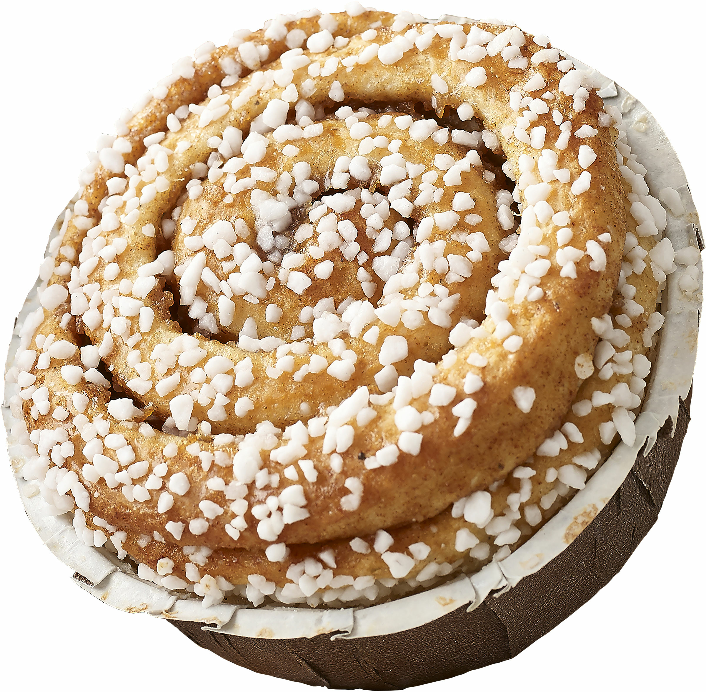 VETEMJÖL (innehåller askorbinsyra, malt av KORN), MJÖLK, pärlsocker, socker, SMÖR, vatten, farinsocker, jäst, margarin (rapsolja, vatten, emulgeringsmedel E471), ÄGG, torkad surdeg av VETE, mannagryn (VETE), mältat VETEMJÖL, kanel, salt, modifierad stärkelse, kardemumma, MJÖLKPROTEIN, stabiliseringsmedel E450, arom (vanillin), fullhärdad rapsolja.