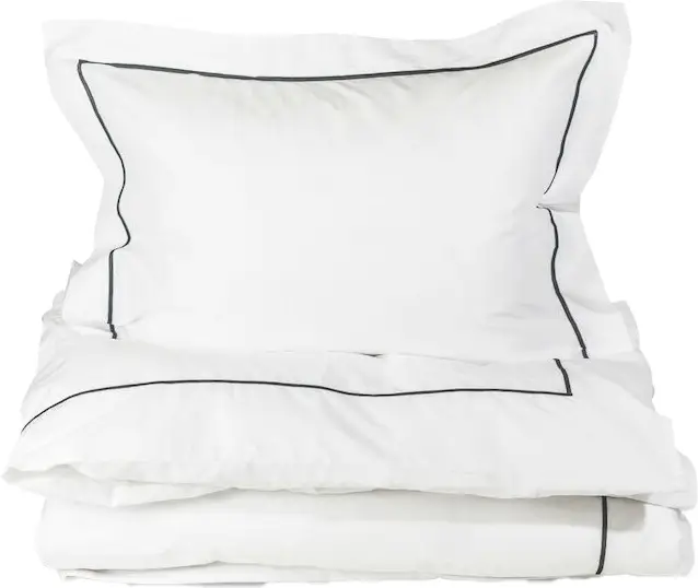 Låt hotellkänslan flytta hem. Carl påslakan och örngott är krispigt sköna. Carl är tillverkad i mjuk, 100% ekologisk bomull och bidrar definitivt till en god natts sömn. Designen är stilren och klassisk med en vit bas som pryds av svarta stygn, en sorts brodyr som kallas ”baratta”. Ett bäddset som håller i evighet, som är lika uppskattat att få som att ge bort. Säljs i set med påslakan och örngott.