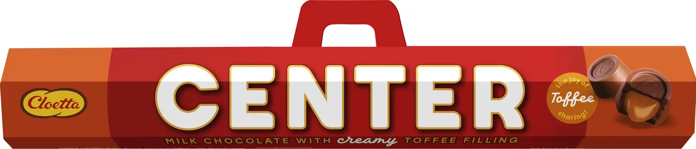 Center har ett mjukt inre toffee-lager med smak av karamell och en lite hårdare utsida som består av god mjölkchoklad. Den runda pralinen är en lätt och okomplicerad choklad som man kan njuta av var och när som helst.