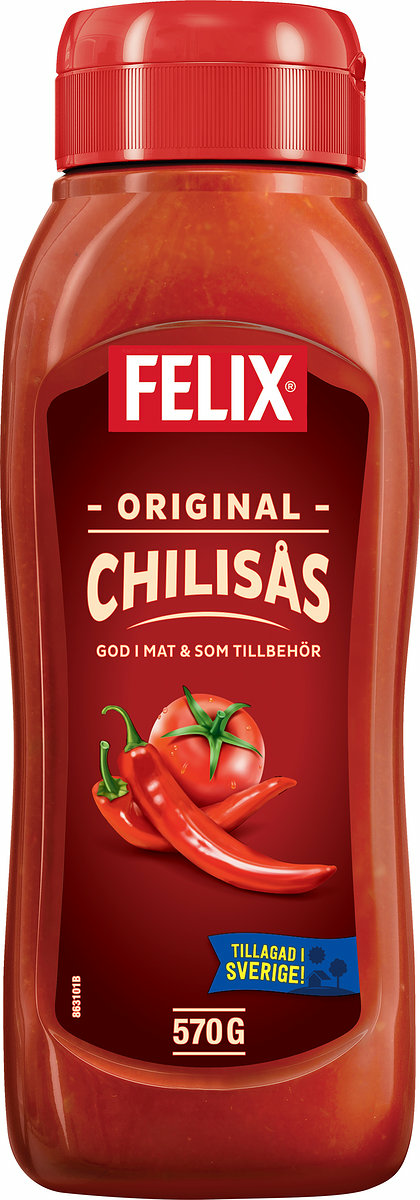 Felix Chilisås Original – en smakrik och fyllig blandning av solmogna tomater och chili, försiktigt kryddad med kanel och spiskummin. Passar perfekt som tillbehörssås eller som bas i grytor och köttfärssås. Prova exempelvis att laga kasslergratäng med chilisås eller korv Stroganoff med chilisås.