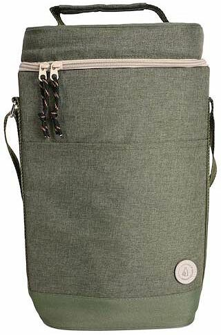 Praktisk och sportig kylväska i grönt rPET-material. Snygga detaljer i beige och svart. En lite högre modell som till exempel passar till två vinflaskor eller 1,5 liters PET-flaskor. Har både bärhandtag och justerbar axelrem.