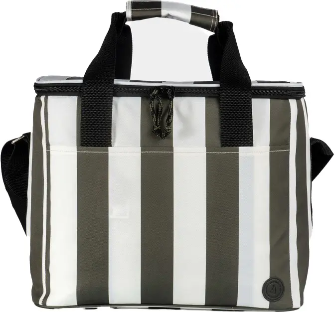 En praktisk och rymlig kylväska med smakfulla ränder, perfekt för utflykter året runt, både sommar- och vinteraktiviteter. Den större modellen är praktisk med både bärhandtag och justerbart axelband. Kylväskan har en liten ficka på framsidan och yttertyget är tillverkat av återvunna PET-flaskor. Vattentäta sömmar på insidan.