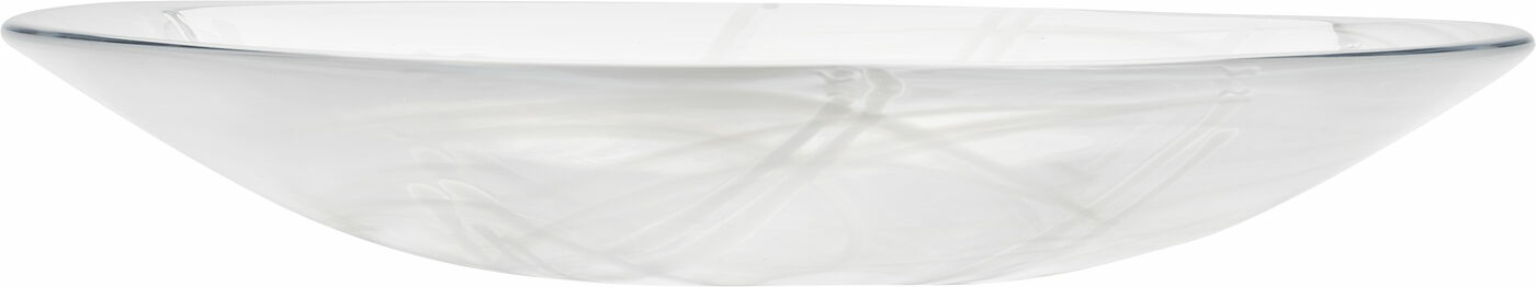 Contrast från Kosta Boda tillverkas med en teknik som heter centrifugering, vilket skapar slöjor av färg inuti glasmassan. I kombination med färgade glaspinnar som adderas i processen, blir varje produkt unik. Det stora fatet i serien är perfekt för olika uppläggningar eller som fruktfat.