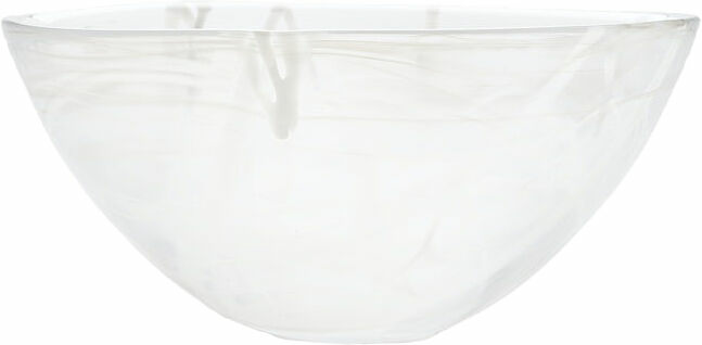 Contrast från Kosta Boda tillverkas med en teknik som heter centrifugering, vilket skapar slöjor av färg inuti glasmassan. I kombination med färgade glaspinnar som adderas i processen, blir varje produkt unik. Den lilla skålen är som klippt och skuren för snacks eller andra tillbehör.