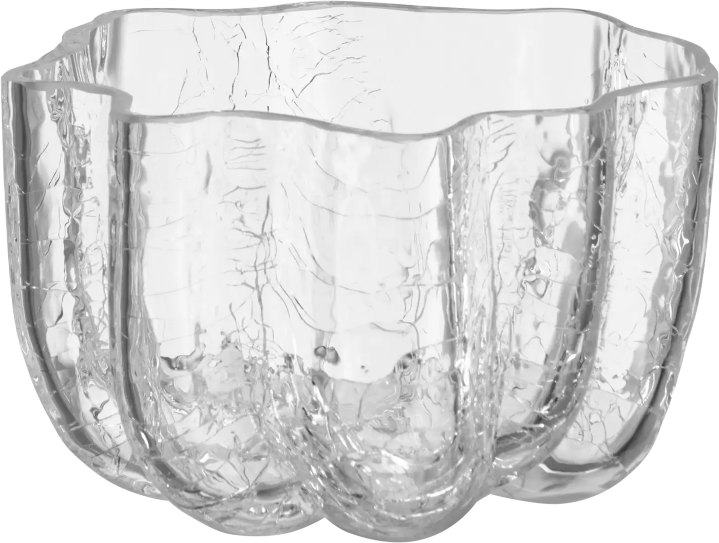 Crackle från Kosta Boda är en hyllning till sprickor, vackert bevarade i glas. Serien har ett skulpturalt och uttrycksfullt yttre som skapas med en gammal hantverksteknik, där det varma glaset doppas i iskallt vatten. Crackle är munblåst i Kosta och formgiven av Åsa Jungnelius.