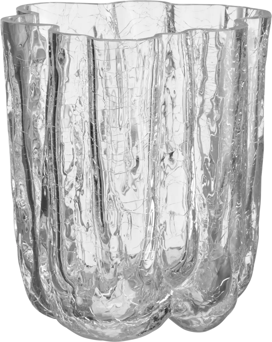 Crackle från Kosta Boda är en hyllning till sprickor, vackert bevarade i glas. Serien har ett skulpturalt och uttrycksfullt yttre som skapas med en gammal hantverksteknik, där det varma glaset doppas i iskallt vatten. Crackle är munblåst i Kosta och formgiven av Åsa Jungnelius.