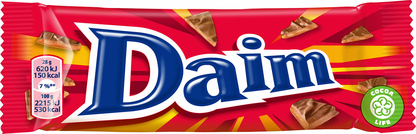 Ingredienser: Socker, palmolja/palmeolie, kakaosmör, kakaomassa, MANDEL (3%), vassle-/valle-/mysepulver (MJÖLK/MÆLK/MELK), SKUMMJÖLKSPULVER, SMÖRFETT/SMØROLIE/MELKEFETT, vassle-/valle-/myseprodukt (MJÖLK), sockrad kondenserad SKUMMJÖLK, salt, emulgeringsmedel/emulgator (SOJALECITIN), aromer.