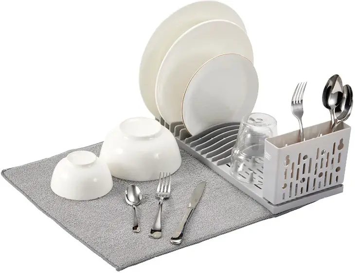 Darcy Diskställ är perfekt för dig med lite disk. Låt tallrikar, glas och bestick torka på plaststället medan djupa skålar och kastruller får rinna av på microfiberduken.