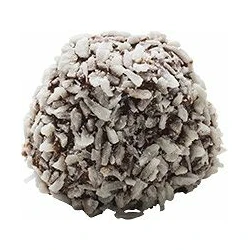 Delikat chokladboll med mockasmak rullad i kokos i ett mindre format. Växtbaserad. Utan laktos i receptet.