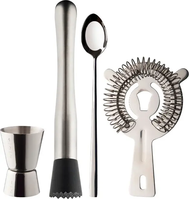 Dillon barset är det ultimata barsetet för dig som vill kunna blanda och servera drinkar med stil. I setet ingår bland annat muddlare, sked och mätglas i rostfritt stål.