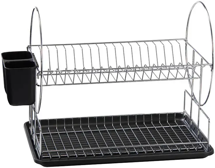 Disa Diskställ i 2 plan hjälper till att hålla köket fint trots att det står en massa disk på tork. I detta väldesignade diskställ har var sak sin plats och allt vatten samlas upp på brickan.