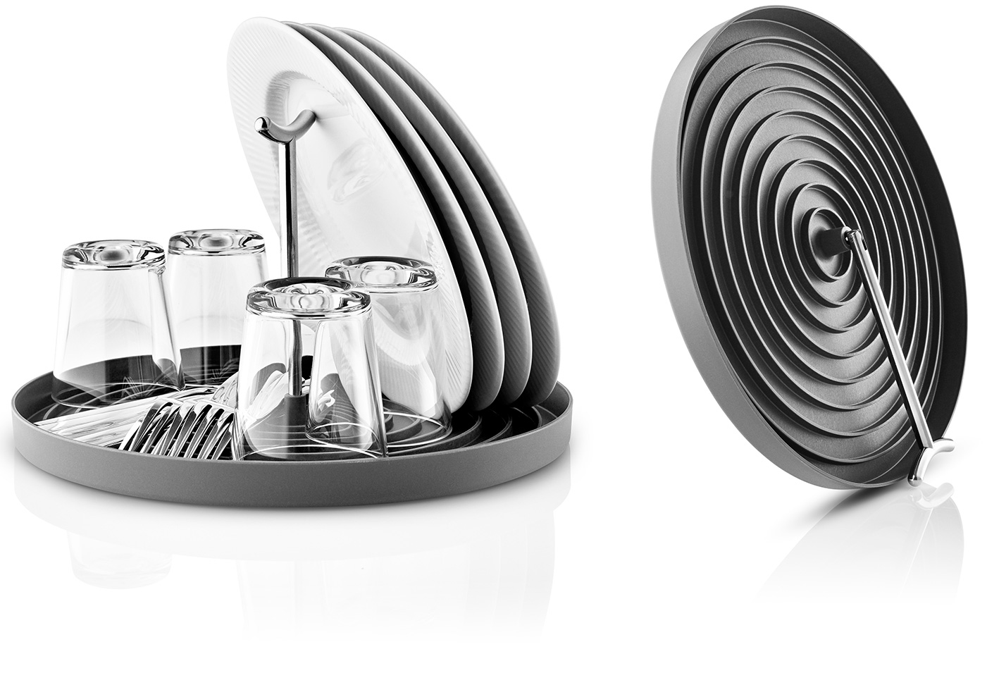 Inga fler dyngsura handdukar eller köksbord. Bekvämt diskställ för hem utan diskmaskin eller för diskning i en handvändning. Droppbrickan samlar allt överflödigt vatten och kan enkelt tömmas i diskhon. Diskstället är tillräckligt för upp till fyra personer och kan enkelt vikas upp för att ta upp minimalt utrymme. Dra upp stången och lägg ner den.