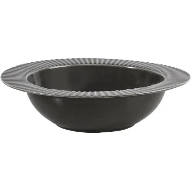 Upptäck Coffee & More djup tallrik i grått, skapad i samarbete med Margot Barolo. Med sin karakteristiska relief och mjukt grå nyans tillför den en känsla av trygghet och balans till varje måltid.