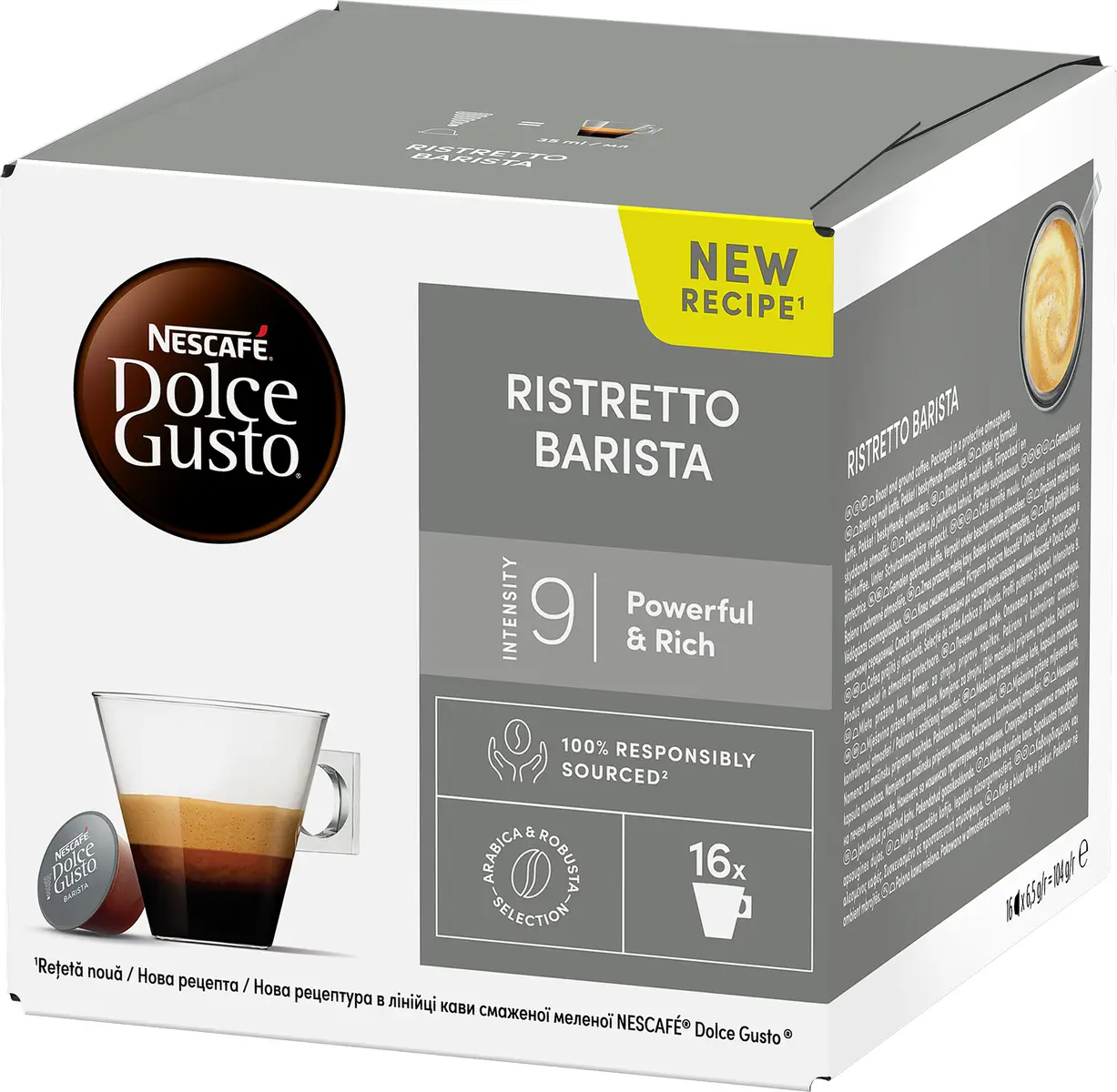 Prova vår NESCAFÉ® Dolce Gusto Barista, en italiensk mörkrostad variant som är mindre än en espresso (35 ml). Det är ett starkt kaffe med hög intensitet och en fyllig arom, sötaktig fyllighet och tät crema. Våra duktiga kaffespecialister har blandat fruktiga sydamerikanska bönor med fylliga asiatiska Robusta-bönor för att få fram kaffets unika fylliga arom.