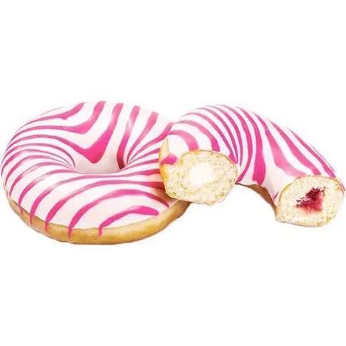 VETEMJÖL, fyllning 16% (hallon 8% (glukos - fruktossirap(VETE och majs), vatten, hallonpuré 20%, socker, modifierad stärkelse, förtjockningsmedel E440, surhetsreglerande medel (E330, E333), frukt- och växtkoncentrat (morot, aronia och druvor; arom), FÄRSKOSTFYLLNING 8% (kvarg 40% (från MJÖLK), socker, vatten, modifierad stärkelse, palmfett, förtjockningsmedel E460, arom, färgämne E160a, konserveringsmedel E202, surhetsreglerande medel E330)),vatten palmfett, vit topping 13% (socker, vegetabiliskt fett (palmkärna, palm), kokosolja, LAKTOS, solrosolja emulgeringsmedel E322, naturliga arom (vanilj)), socker, druvsocker (VETE), rosa topping 2,9% (socker, vegetabiliskt fett (palmkärna, palm), stärkelse, LAKTOS, koncentrat av rädisa, svart vinbär, äpple, sötpotatis och körsbär, emulgeringsmedel E322 (från SOJA) aromer), jäst, rapsolja, SOJAMJÖL, VASSLEPULVER, bakpulver (E450, E500), salt emulgeringsmedel (E471, E481),VETEGLUTEN, SKUMMJÖLKSPULVER, mjölbehandlingsmedel E300, HELÄGGSPULVER, färgämne E160a, arom. Kan innehålla spår av jordnöt, hasselnöt, mandel och valnöt.