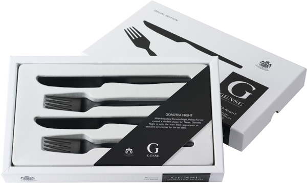 Gense har med bestickserien Dorotea Night fått ett spännande bestick som förenar Genses tradition och hantverkskunnande med design på internationell nivå. Besticket har en solid, balanserad form där formen ligger i konturen och bestickets karaktäristiska rundade avslut.